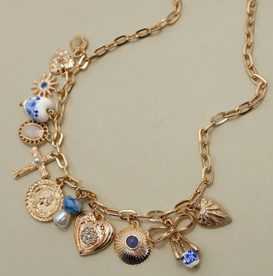 Charm Necklace-Porcelain Hearts Cross Necklace