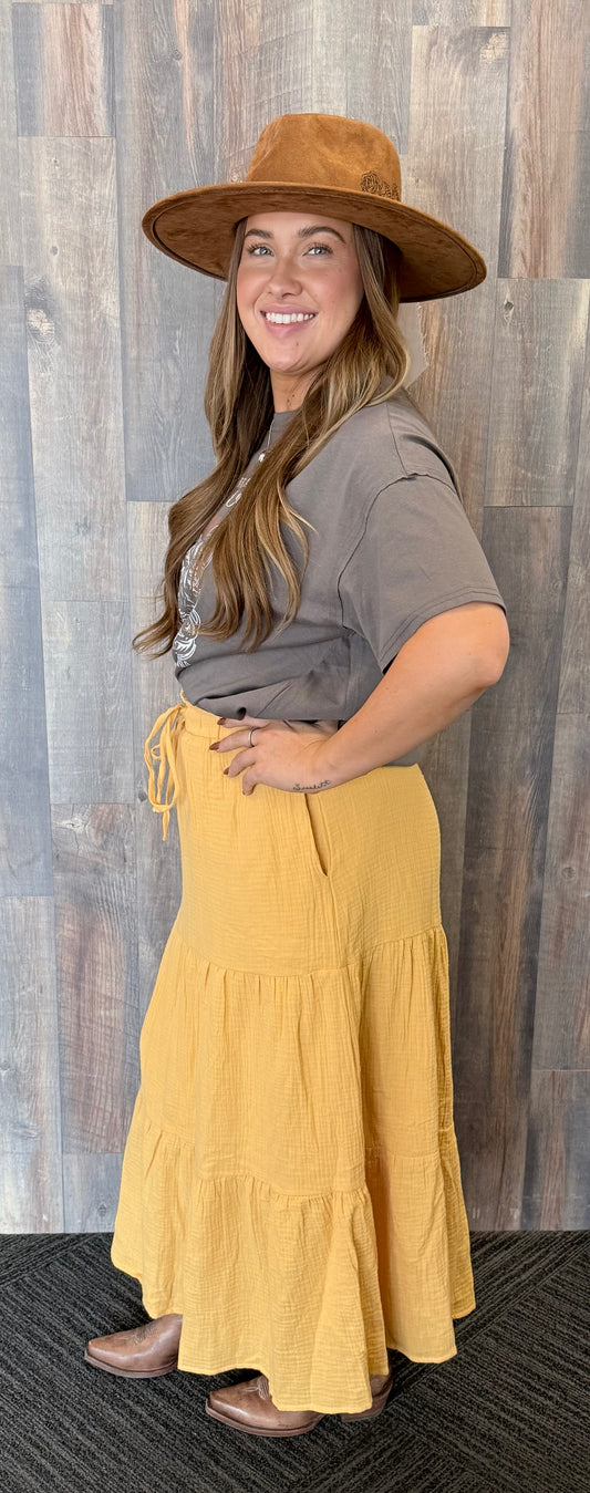Elastic Waist Tiered Gauze Maxi Skirt