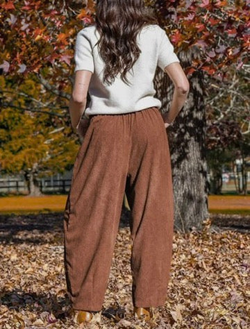 Vintage Style Corduroy Pants with Drawstring