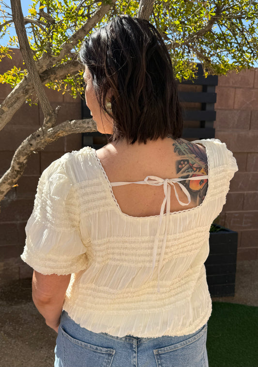 Ruched Cream Chiffon Blouse