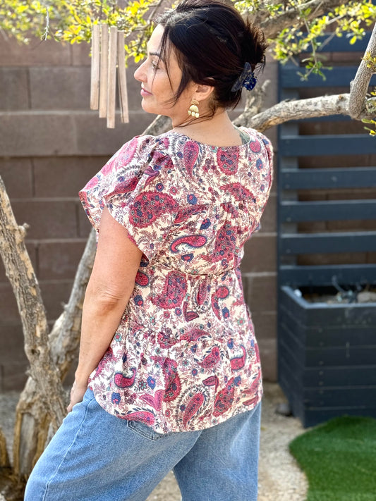 Paisley Poly Linen Woven Top
