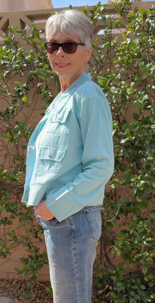 Frayed Accent Aqua Colored Jacket