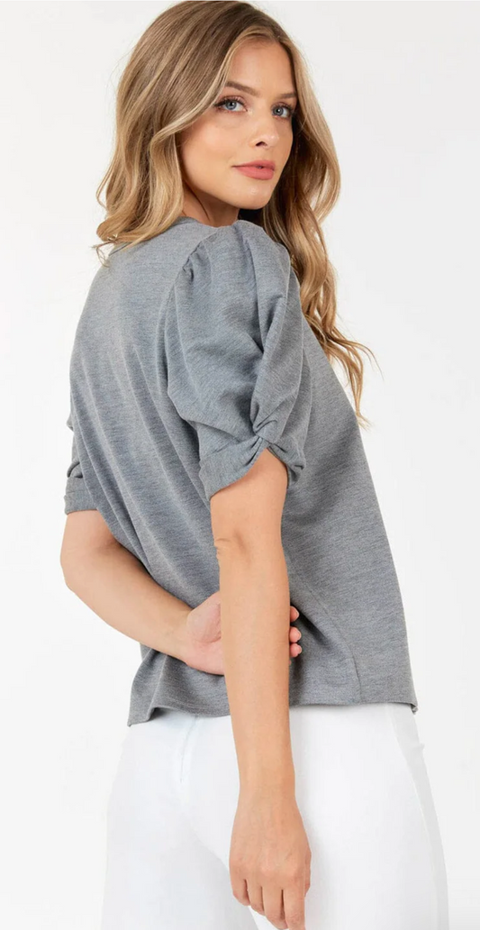 SHORT PUFF SLEEVE GREY BLOUSE