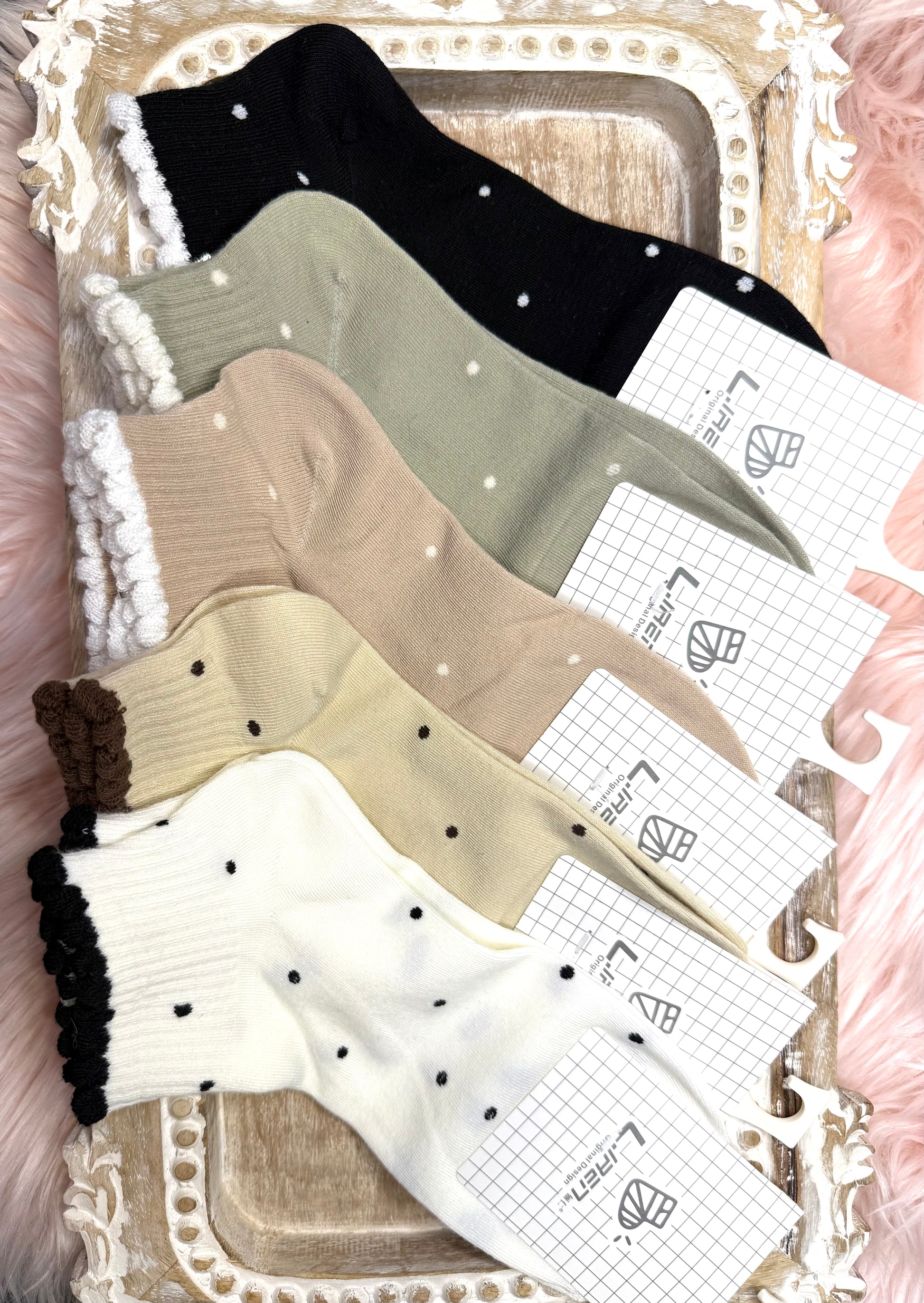 These ankle socks combine comfort and style with a delicate crochet ruffle trim. Made to fit snugly around your feet, they offer a soft feel ideal for everyday wear. The crochet detail adds a charming touch, making them perfect for pairing with casual or dressier shoes.