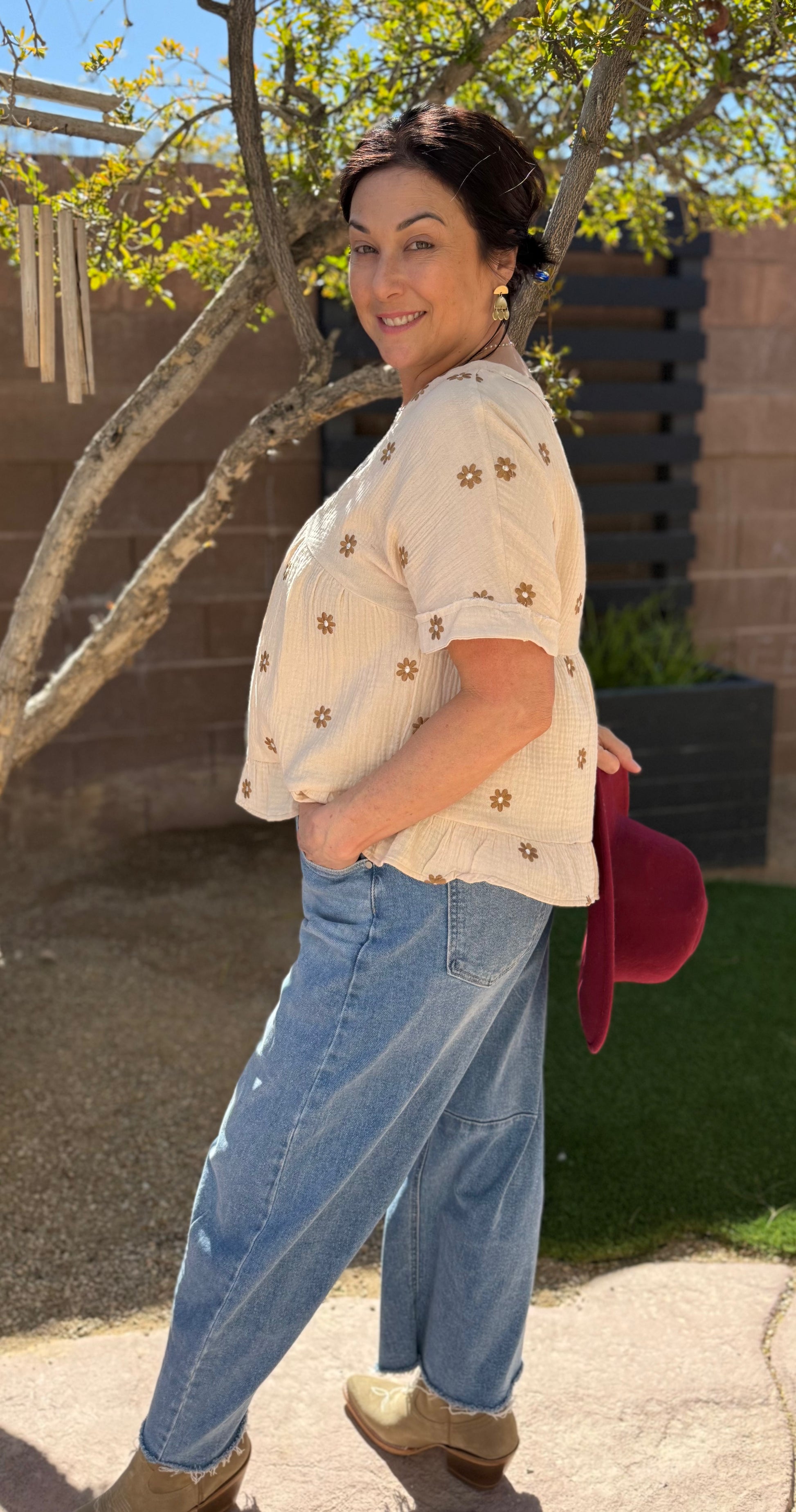 Elevate your wardrobe with our Flower Embroidered Woven Blouse Top. The intricate floral embroidery adds a touch of elegance to this versatile blouse. Perfect for any occasion, it effortlessly combines style and comfort.