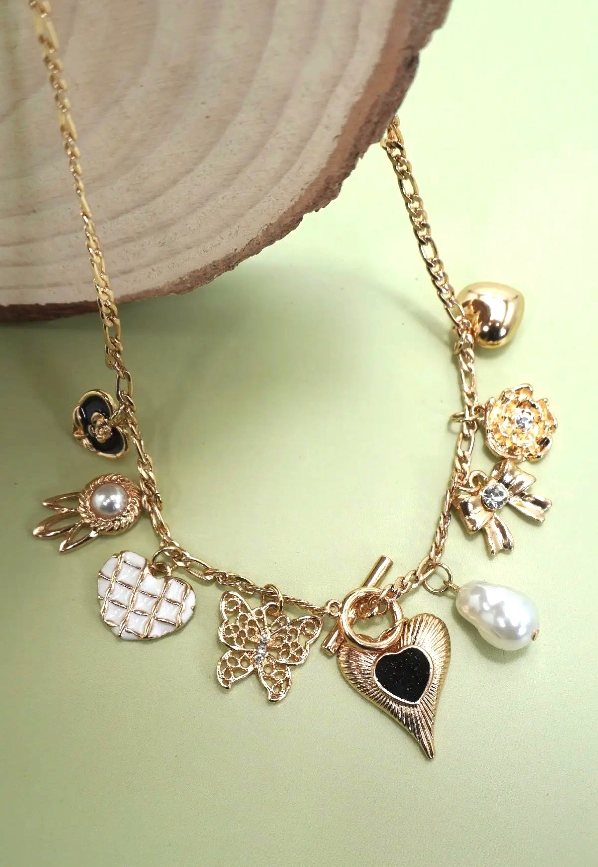 Heart, Bow & Pearl Charm Necklace