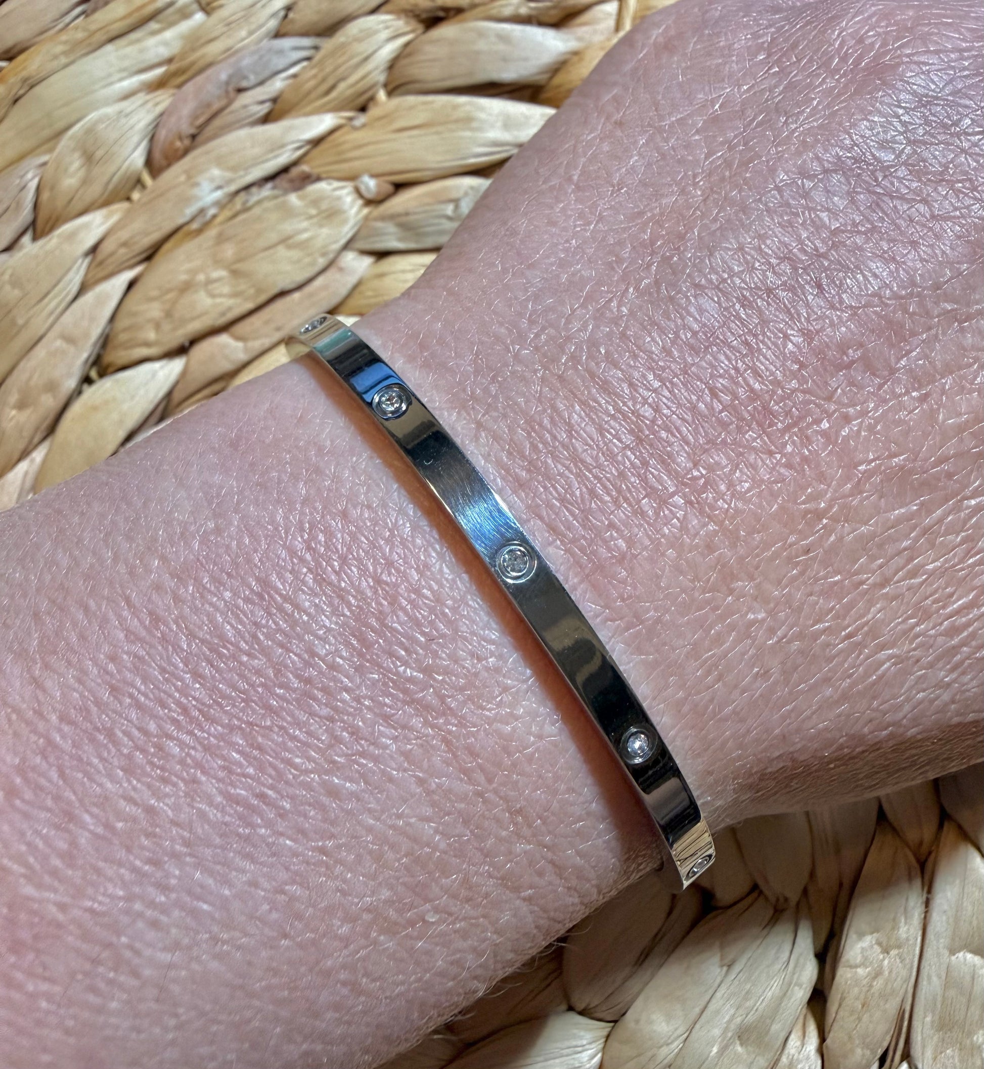 Sleek and sophisticated, this stainless steel hinge bracelet combines modern design with everyday durability. The smooth metal construction offers a polished finish that complements any style, while the secure hinge mechanism ensures a comfortable, reliable fit. Perfect for layering or wearing solo, this versatile piece transitions effortlessly from casual to elegant occasions. Crafted from quality stainless steel for lasting wear without tarnish or corrosion.