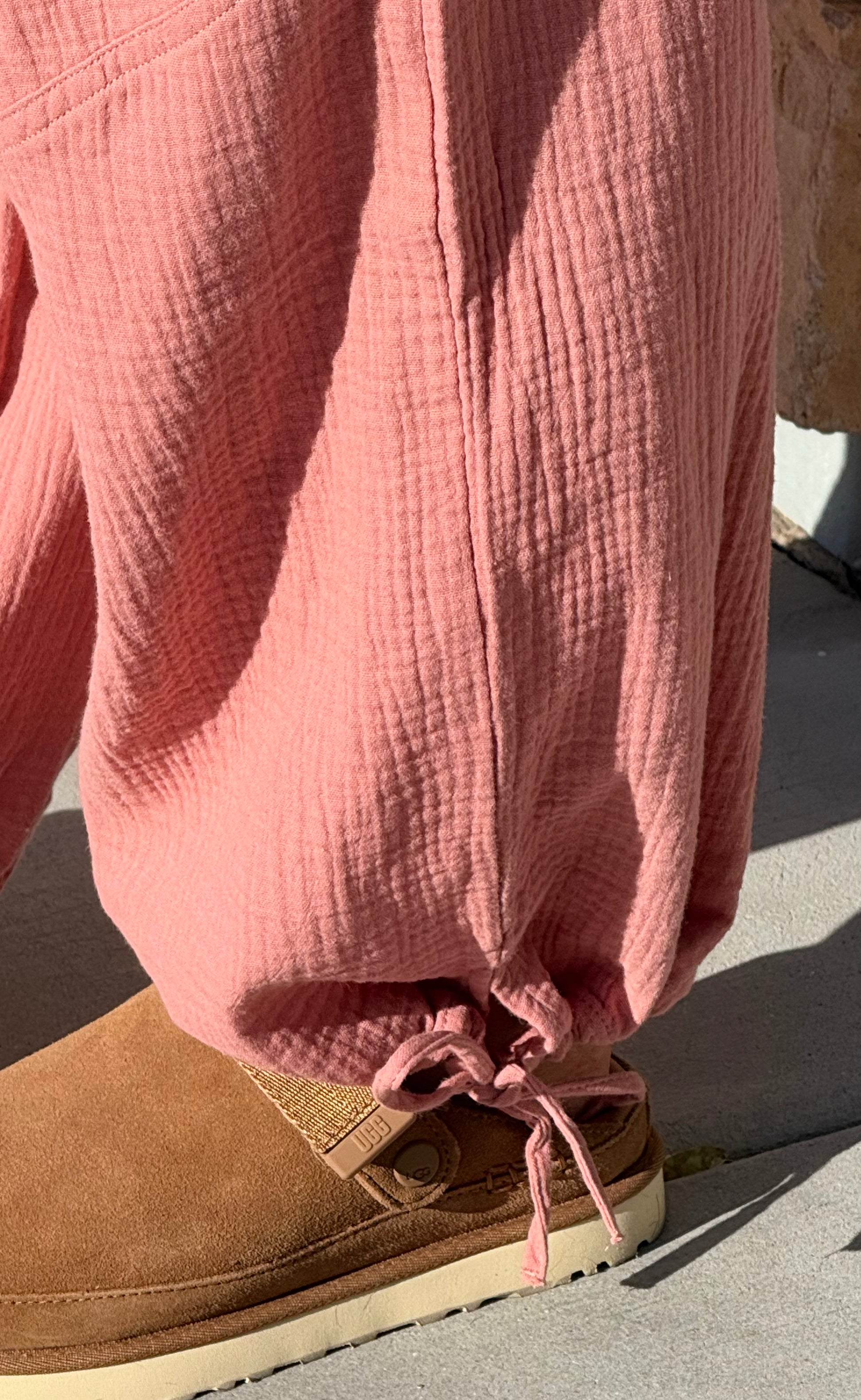 Experience comfort and effortless style with our Wanderlust Gauze Pants. Crafted from lightweight, breathable gauze fabric, these pants offer a relaxed fit perfect for warm days or casual outings. Their soft texture ensures all-day comfort, while the versatile design pairs easily with a variety of tops for a chic, laid-back look. Ideal for travel or everyday wear, these pants combine ease and elegance in one wardrobe essential.
