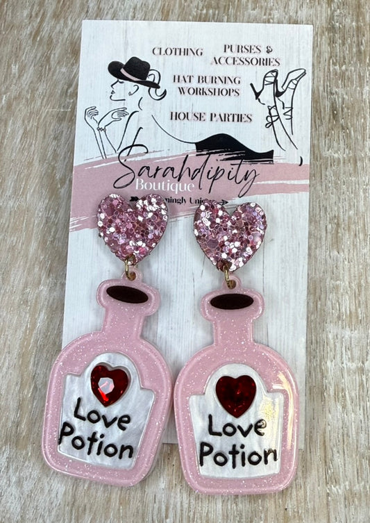 Gold Plated Hoop Pink Heart Earrings w/Bling